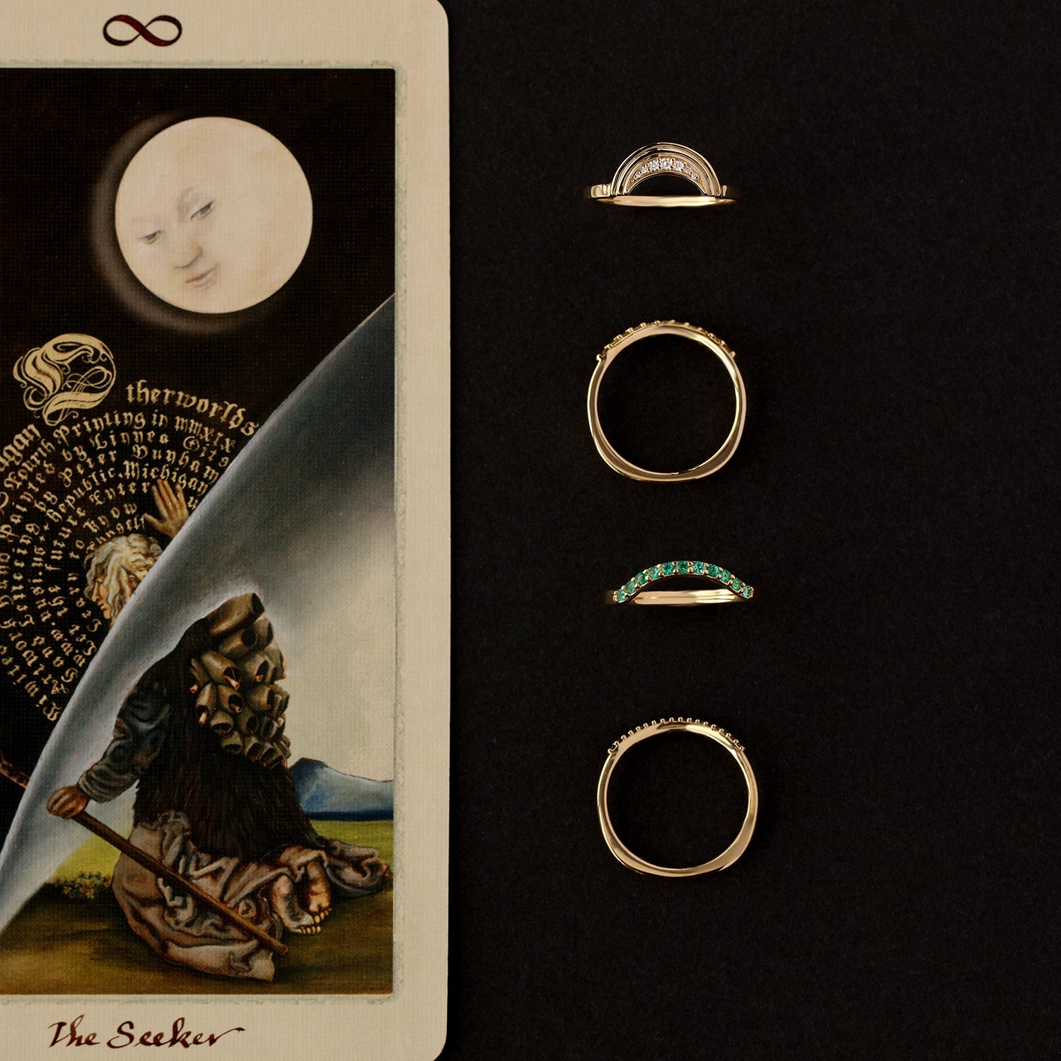 Whether you’re pairing two contour rings with a unique solitaire or building a full Midheaven set, she will guide you through every detail.